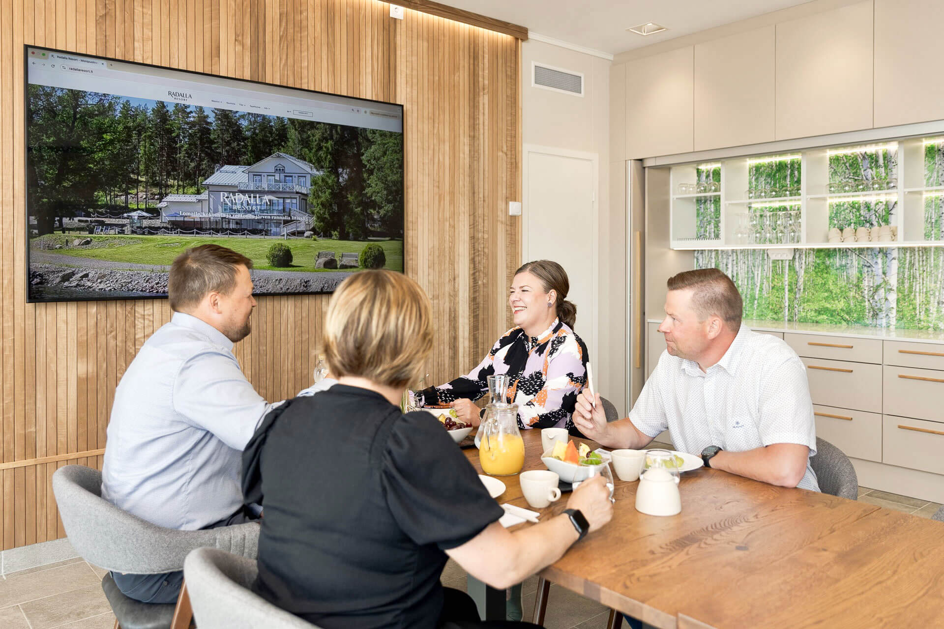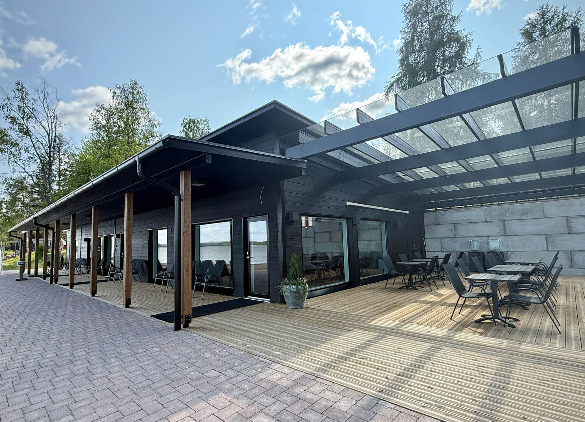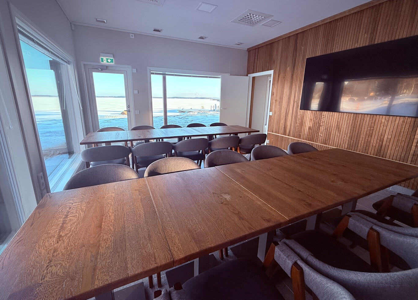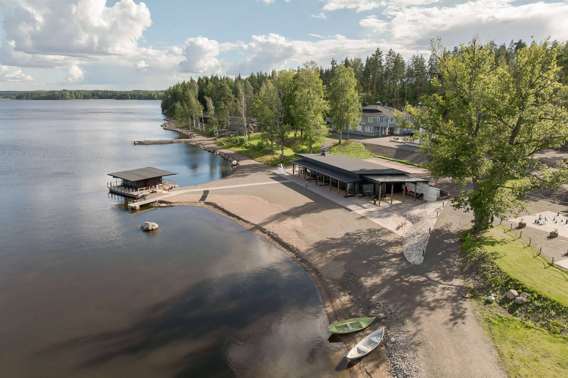 Radalla Resortin Rantasaunan Kabinetti on moderni, avara ja valoisa monitoimitila, joka sopii erinomaisesti niin kokouksiin, juhliin kuin rentoihin illanviettoihin. Suuret ikkunat tarjoavat esteettömän näkymän järvelle, ja tila on varustettu omalla sisäänkäynnillä sekä wc-tiloilla, mikä takaa yksityisyyden ja mukavuuden.