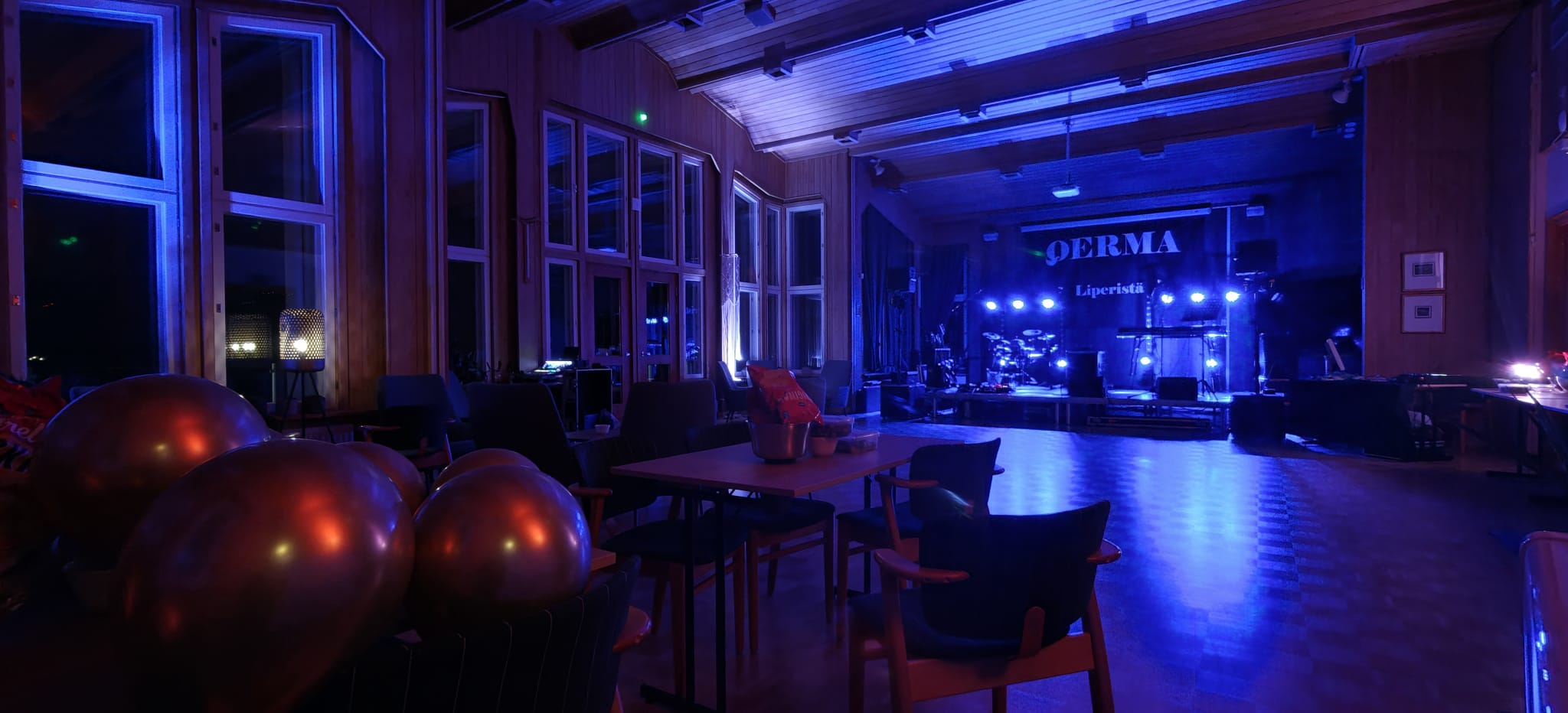 Klubitalon salissa ilmastointi jäähdytyksellä